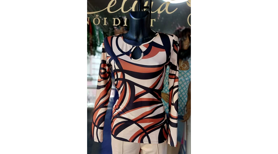 Barna-fekete absztrakt mintás női elegáns felső – magyar gyártmány