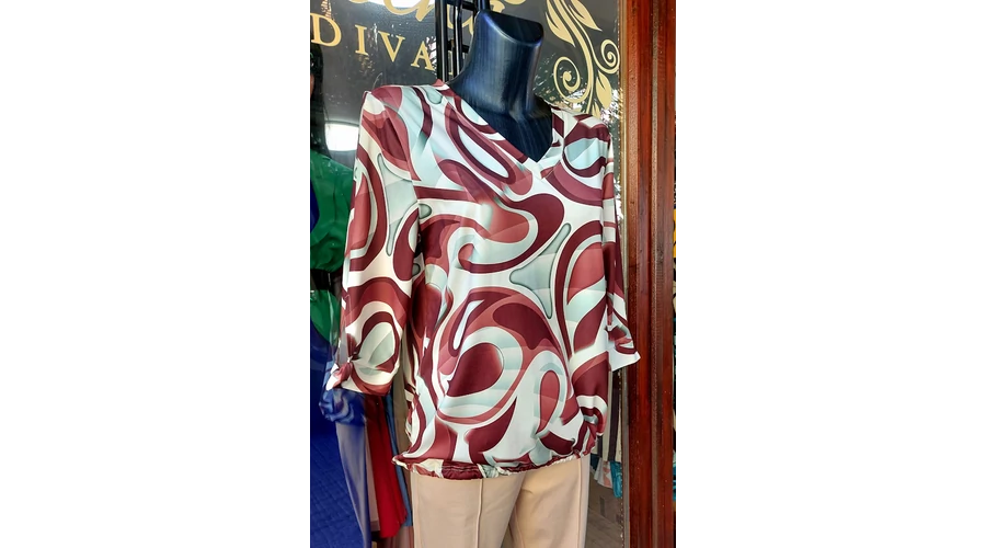 Lépj be az elegancia világába ezzel a különleges alkalmi női felsővel! A csokibarna-pisztácia színkombináció és az elegáns mintázat minden alkalomra stílusos megjelenést biztosít.
