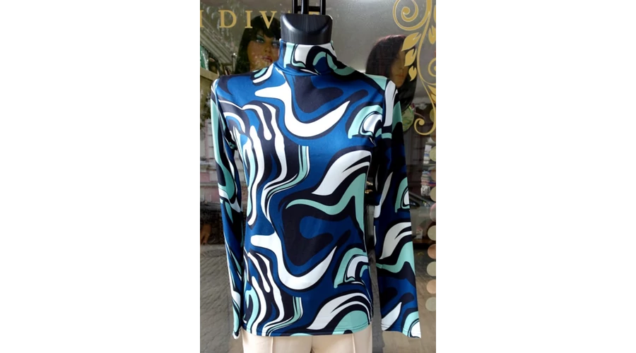 - A fekete alapon türkiz és zöld és kék elegáns mintázat modern és kifinomult megjelenést biztosít, míg az elasztikus, kényelmes anyag garantálja a maximális komfortot.