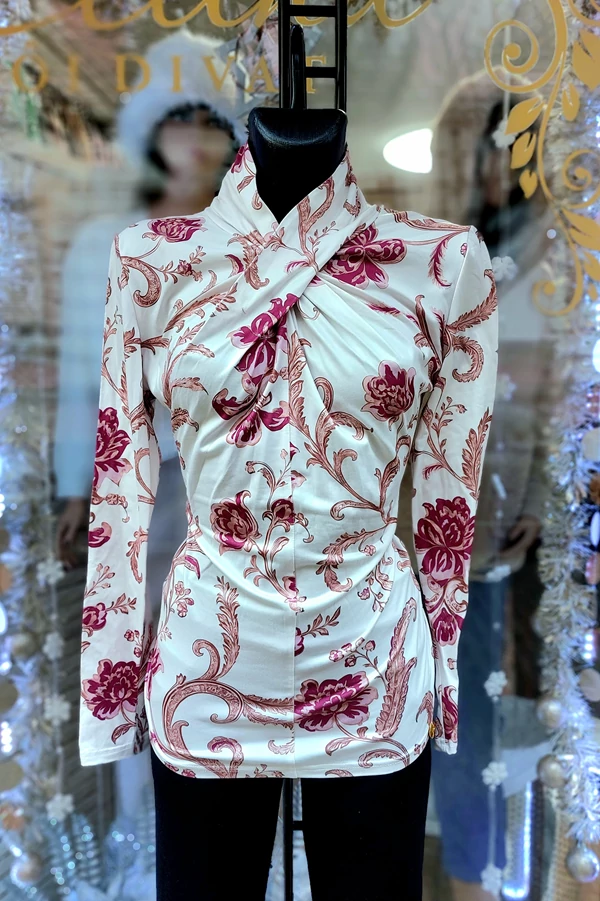 Ez az elegáns, bordó mintás női felső kiváló választás ünnepi alkalmakra, családi eseményekre, elegáns estékre vagy akár munkahelyi alkalmi öltözethez.