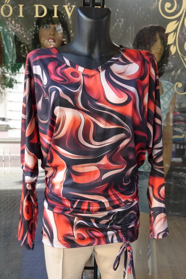 Minta: A fekete alapon vöröses bordó mintás, nagyon elegáns, alkalmi női tunika, tökéletes viselet az ünnepi alkalmakra!